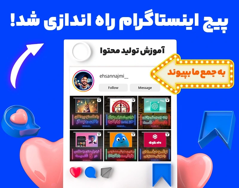 برای دیدن آموزش های رایگان تولید محتوا با هوش مصنوعی (ویدیویی + قدم به قدم) و رسیدن به تخصص اولیه لازم برای کسب درآمد همین الان رو عکس زیر کلیک کن و پیج اینستاگرام ما رو فالوو کن تا هیچ آموزشی رو از دست ندی.