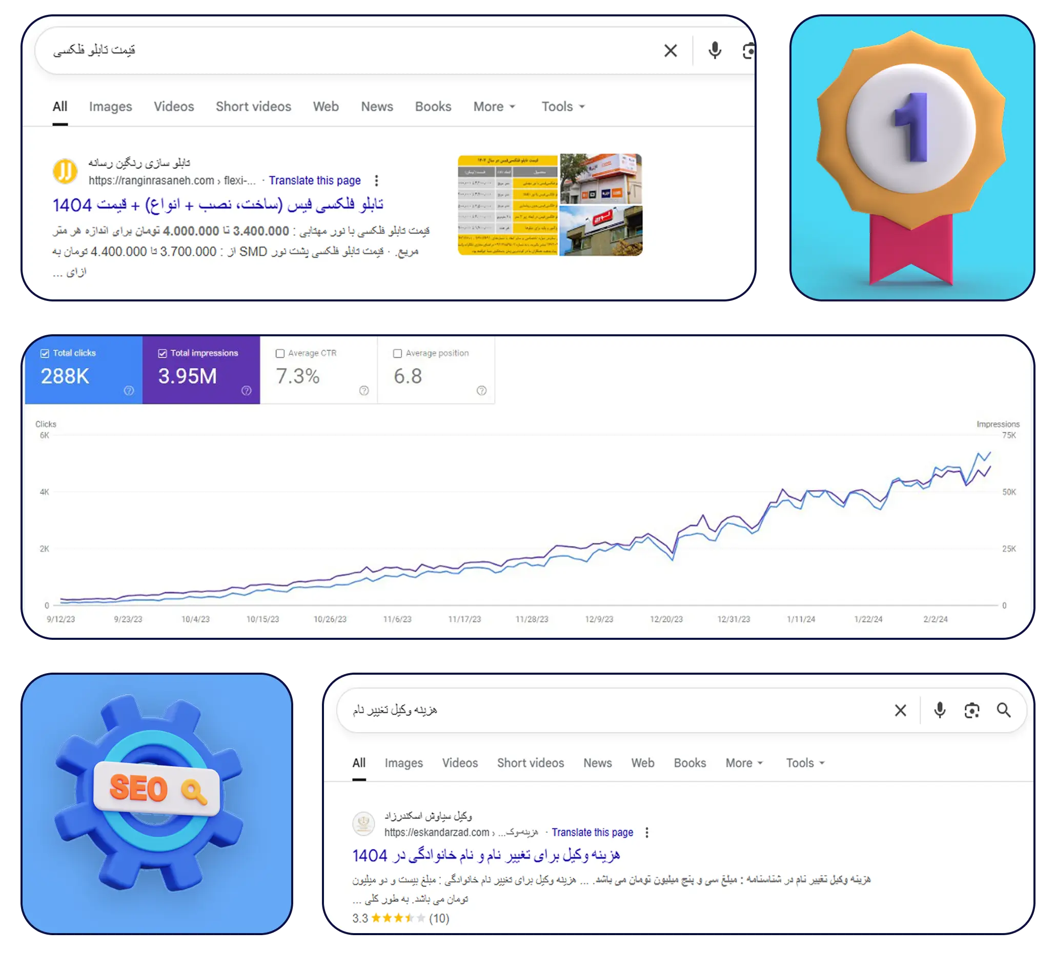 تجربه ما در پروژههای مختلف نشان داده که دستیابی به رتبههای برتر گوگل، حاصل تحلیل دقیق، اجرای اصولی و استمرار در بهینهسازی است.